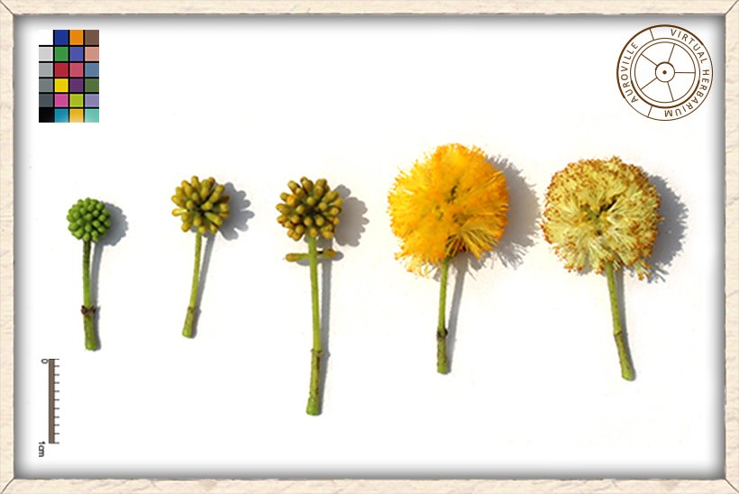 Vachellia nilotica flower buds (left) to mature flower-head (right)
