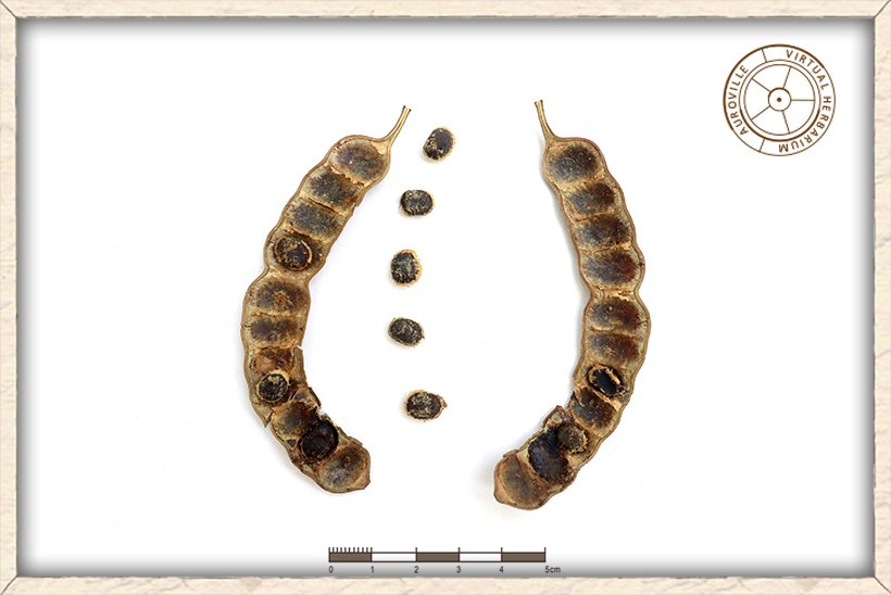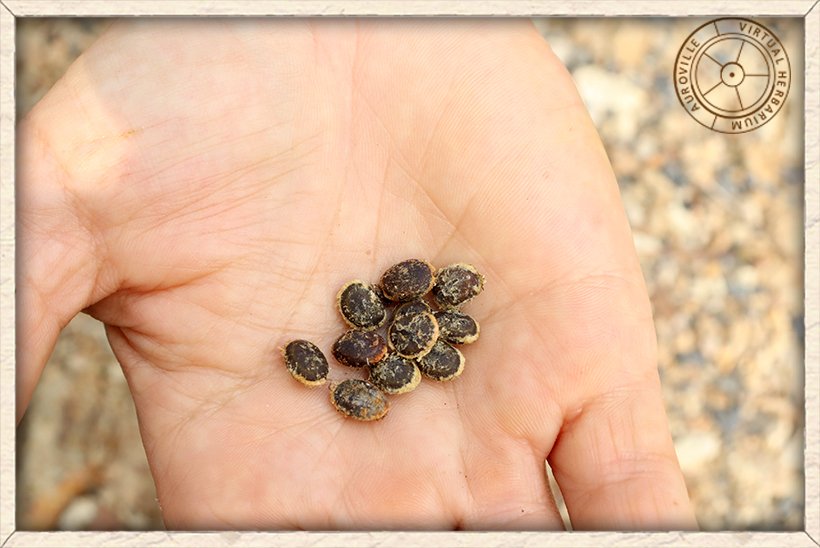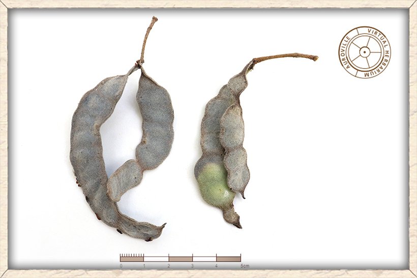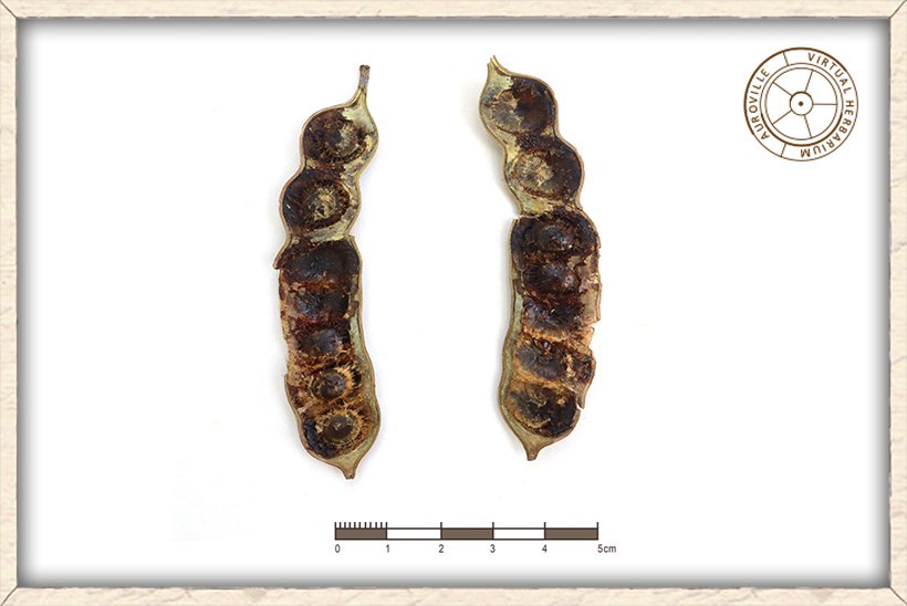 The seeds of Vachellia nilotica are flat shaped and black in colour.