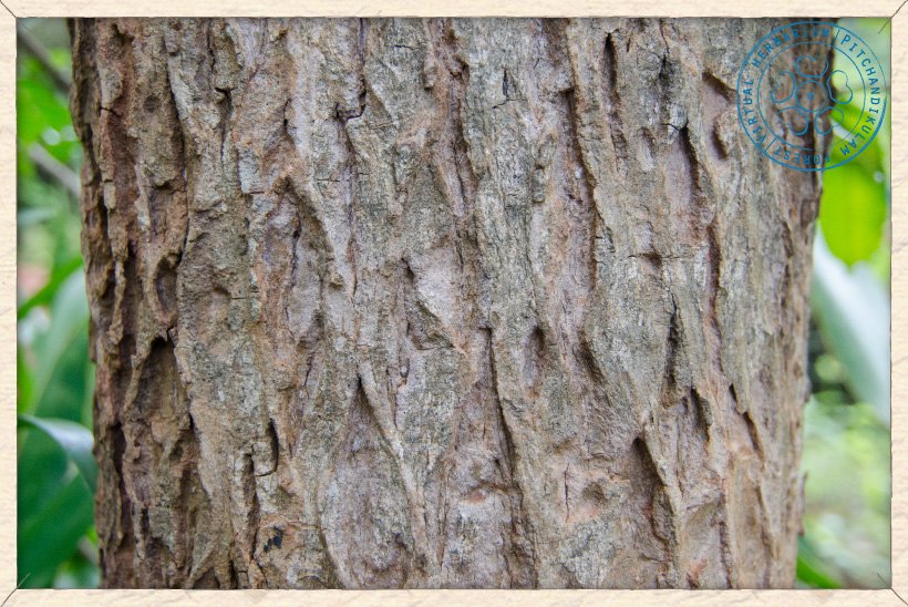 The bark of Barringtonia acutangula is rough and dark brown-coloured.